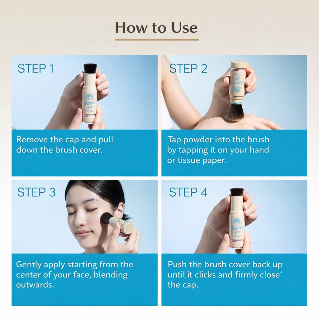 外出先でも簡単に塗り直しできるブラシ一体型の日焼け止めパウダー。