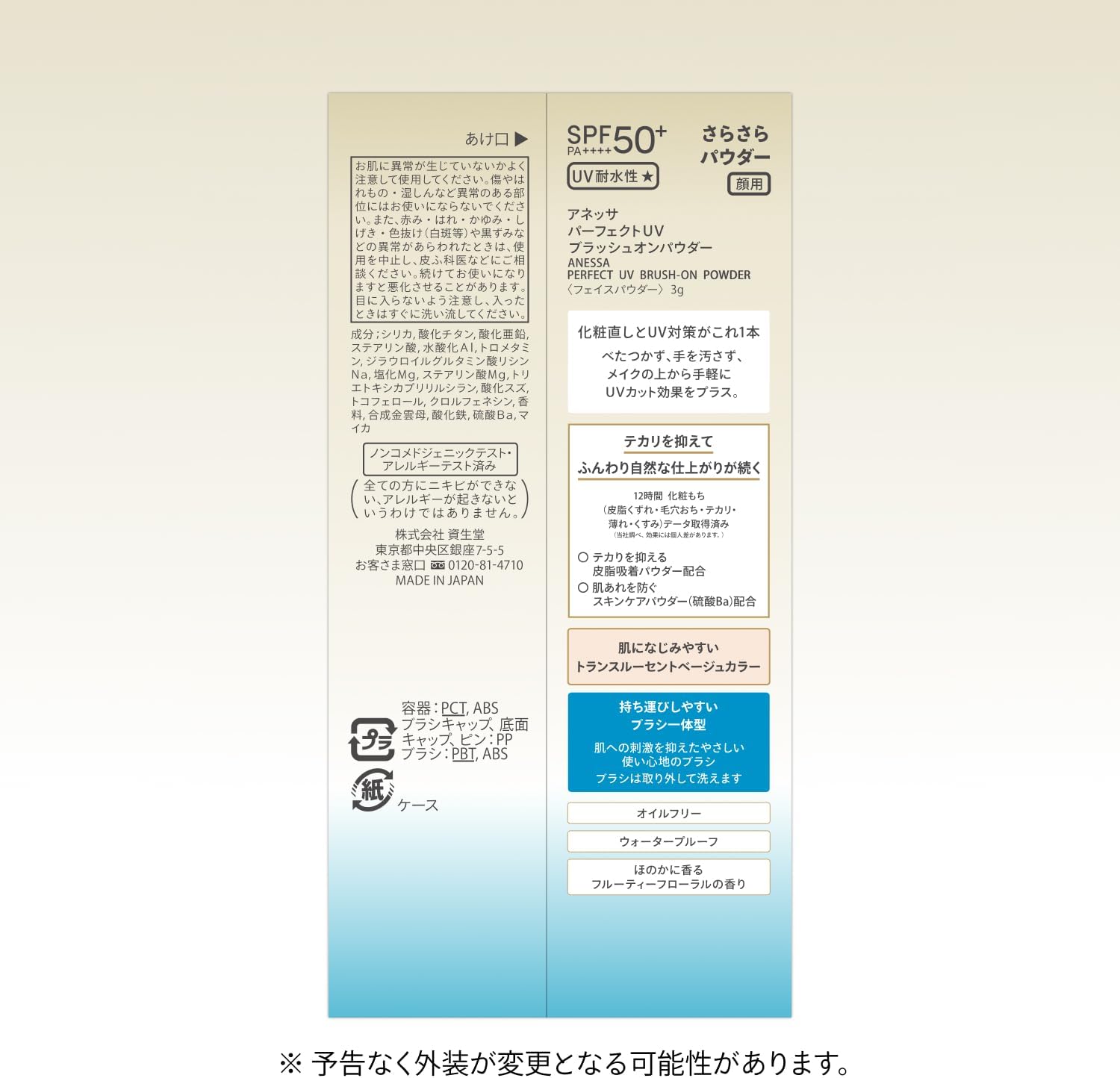 アネッサ(ANESSA) パーフェクトUV ブラッシュオンパウダー 3g SPF50+ PA++++|メイクの上から塗り直しOK 皮脂吸着 透明感 UVパウダー