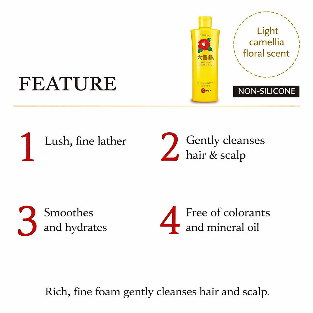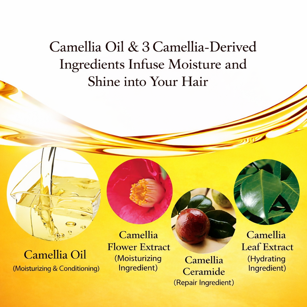 きめ細かな濃密泡が髪と頭皮を包み込み、汚れや余分な皮脂をすっきりオフ。椿オイル(ツバキ種子油)配合で、洗うたびにうるおいを守り、指通りなめらかな仕上がりを実感できます。ドライヤー後もまとまりやすく、朝のスタイリングもぐっとラクに。