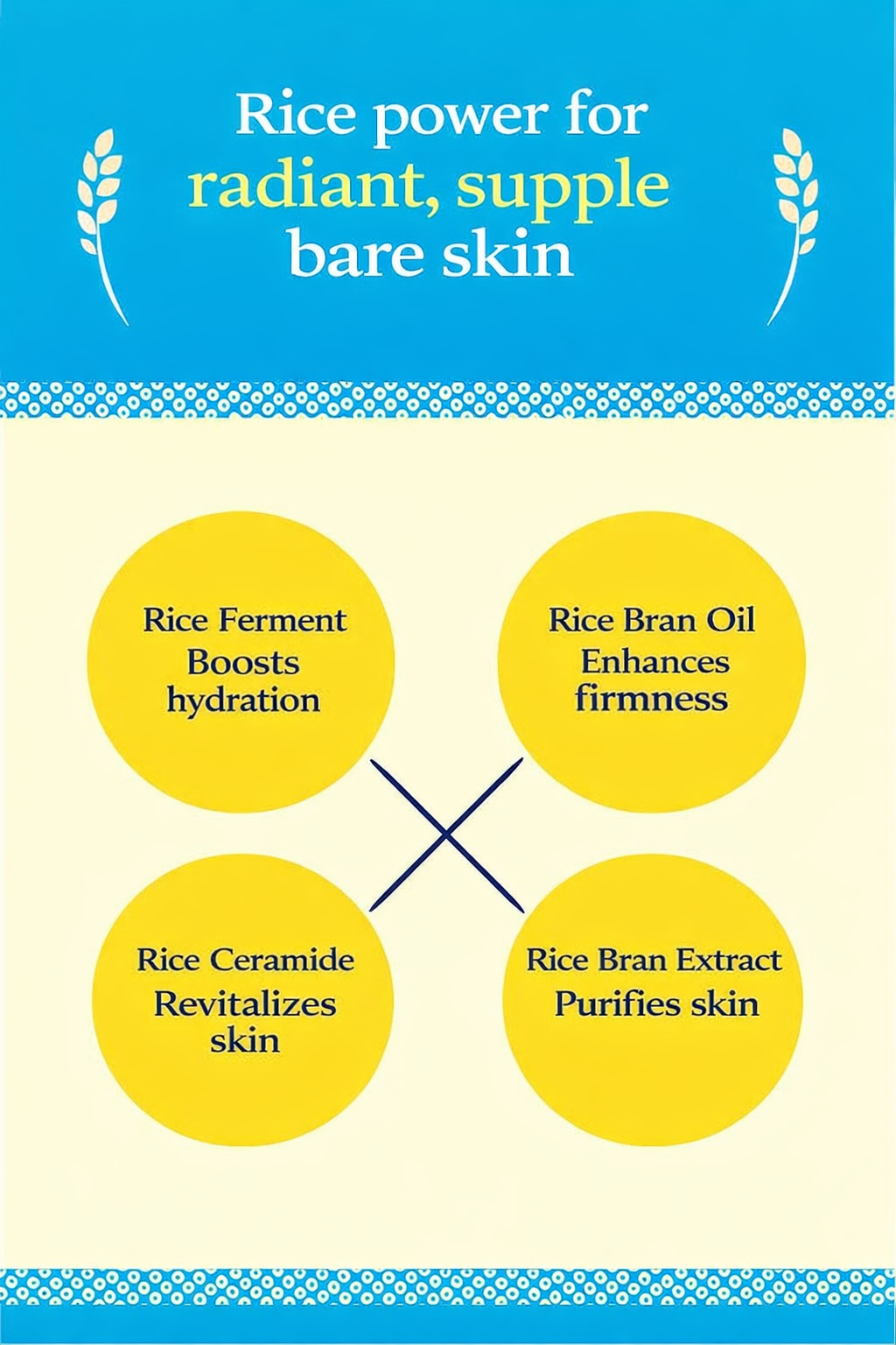 水、BG、コメヌカ油、グリセリン、パルミチン酸エチルへキシル、ポリソルベート60、セタノール、ステアリン酸グリセリル、コメ発酵液、コメヌカエキス、コメヌカスフィンゴ糖脂質、アーチチョーク葉エキス、シア脂、乳酸桿菌、ベヘニルアルコール、ワセリン、水添レシチン、水添リゾレシチン、ペンチレングリコール、アルギニン、カルボマー、トコフェロール、マルトデキストリン、(ポリアクリル酸Na/ジアクリル酸PEG-9)クロスポリマー、シクロペンタシロキサン、水酸化K、フィチン酸、メチルパラベン、プロピルパラベン