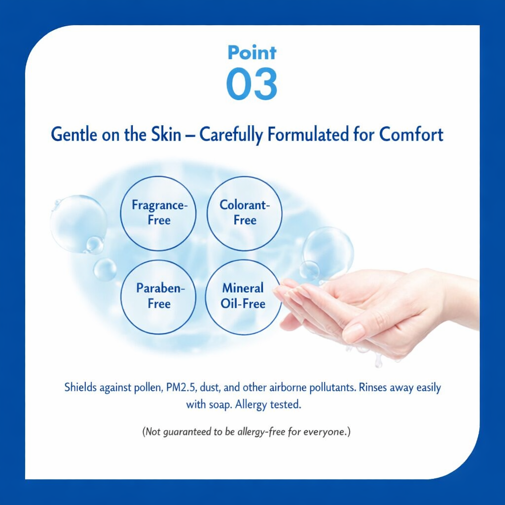 SPF50+ / PA++++で紫外線から肌をしっかり守りながら、ヒアルロン酸配合でうるおいを与え、乾燥から肌を守ります。