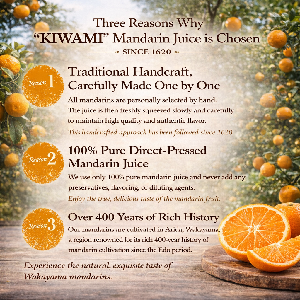 そのままお飲みいただくか、お酒の割材など凍らせてシャーベットとしてもお召し上がりいただけます。 "酸味と甘みのバランスが絶妙な温州みかん、有田みかんのブランド「マルケンみかん」を中心とした完熟早生(収穫時期は11月上旬〜12月下旬頃)を原料としております。